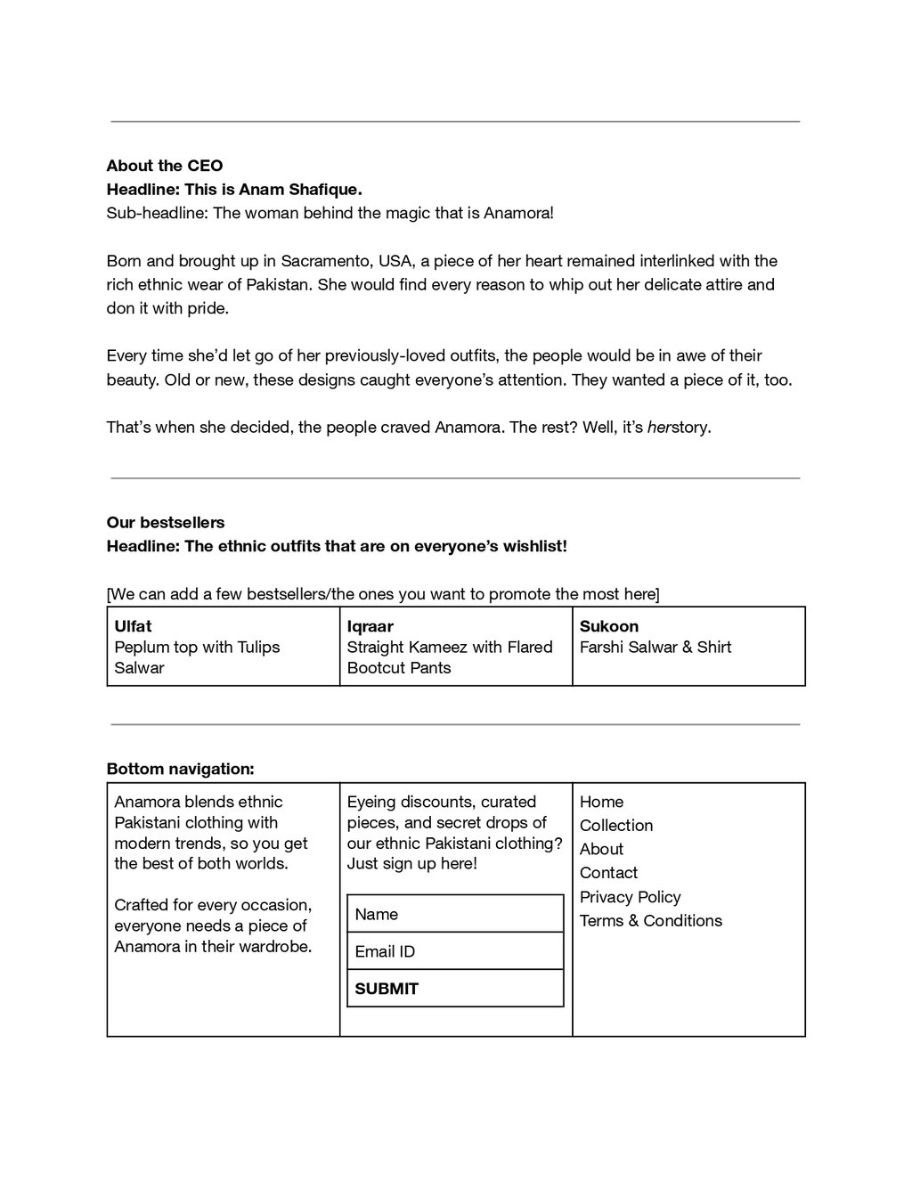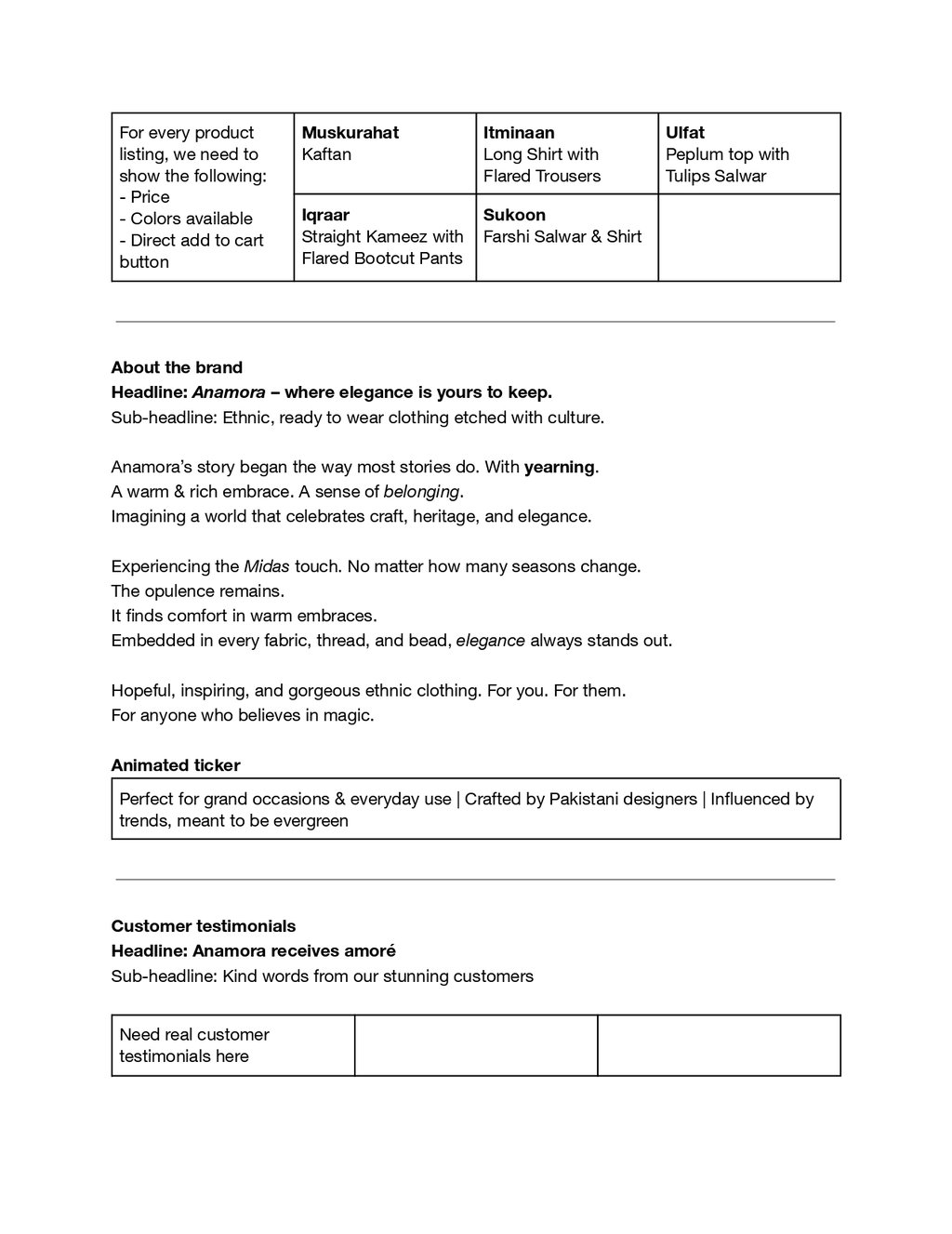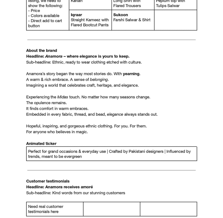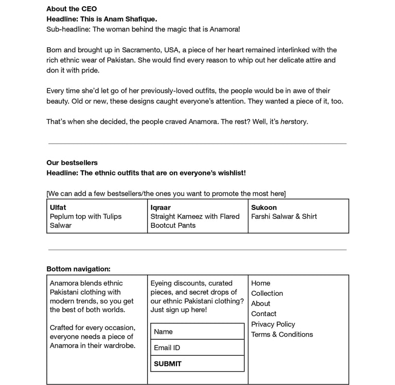The result: Crafted website copy that emphasises on seasonal drops and reads like a love story. Yep, her first edit had all the steps of falling in love in Urdu!
